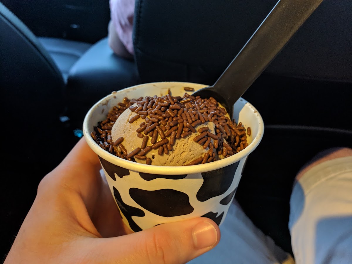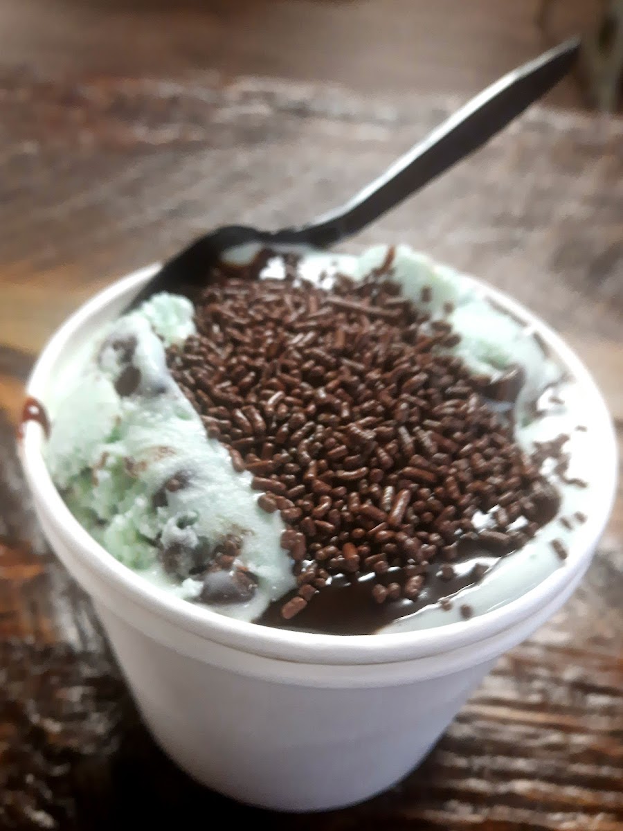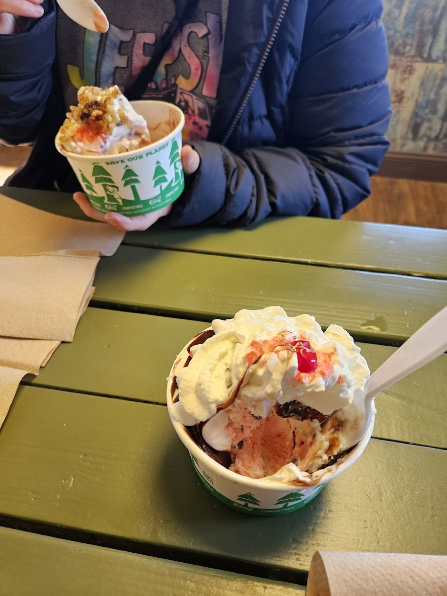 My daughter treated us all to ice cream cones and sundaes! Yum! Excellent ice cream, many unique flavors, fabulous hot fudge, nice and cool. They also have an alcohol license and make all kinds of unique drinks. Definitely worth checking out!